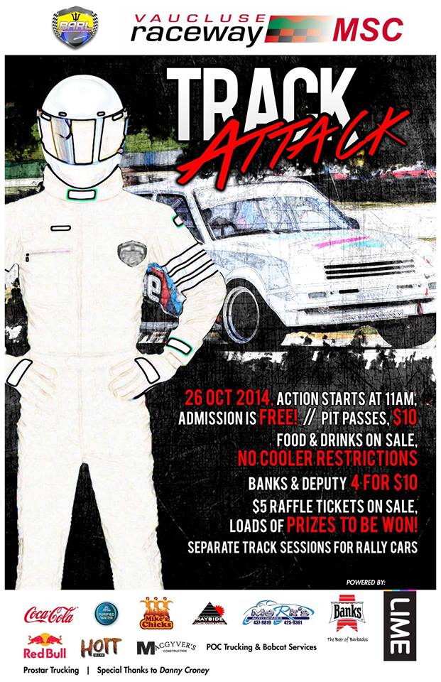 Entries are open at Barbados Muffler Centre in Edgehill. Alternatively, completed entry forms can be e-mailed to spencer@huzier.com and can be signed and paid upon arrival.
