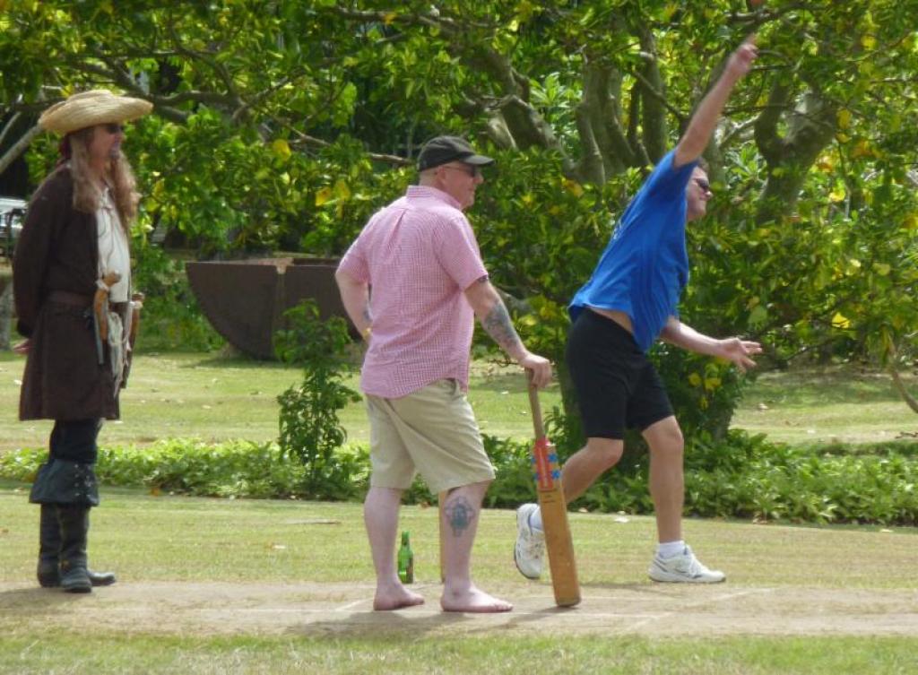 Umpired by BHRC founder Greg Cozier (in his infamous Bajan 'Gentleman Pirate' Stede Bonnet costume, in order to better dispense the Jolly Roger 'Pirate Punch Penalties'), the event was run to interpretively correct cricket rules and resulted in a draw between the home team (captained by Spencer Hutchinson) and the touring side (skippered by Ian Grindrod).