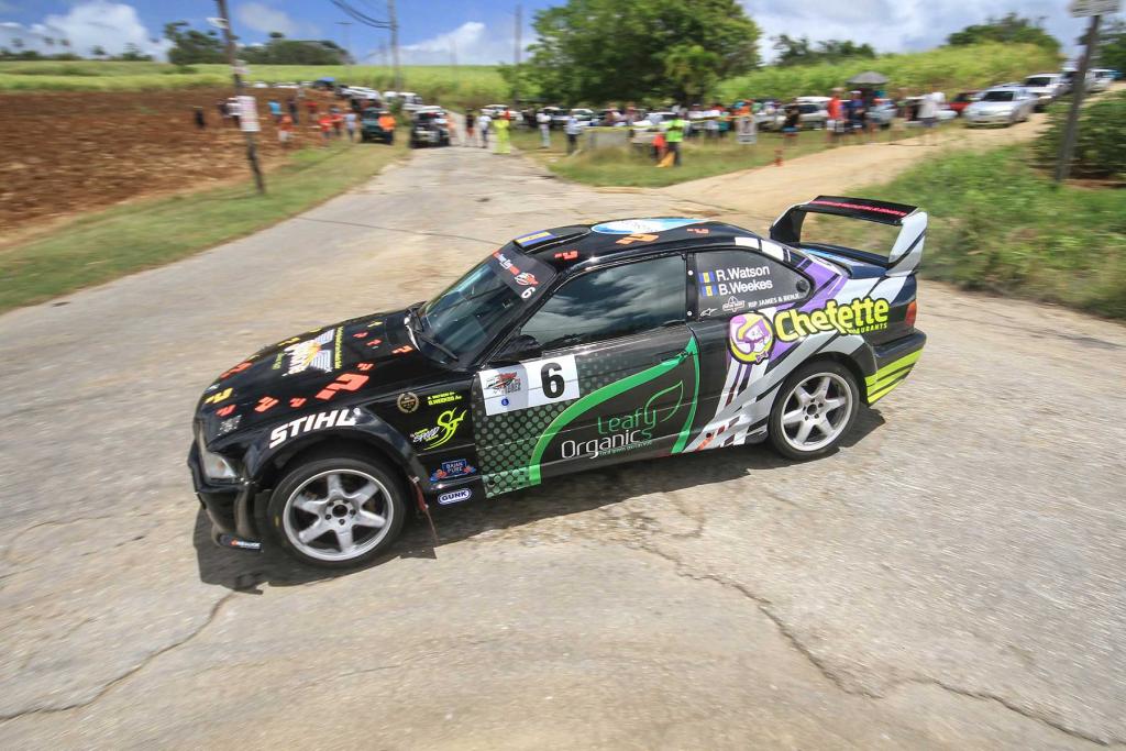 Clarke was also in the top 10 overall all morning on Pool to Society, to lie third overall at the lunch break, leading a four-car 2wd battle covered by 9secs; just behind were SM3 leader Rhett Watson (Chefette/Stihl/Gliptone/Leafy Organics/Gunk/Hankook Tyres/Bajan Pure Water/It’s Barbados/Power King Batteries, in support of Little Pink Gift BMW M3), then SM2 runners Dane Skeete (Sol/Automotive Art Peugeot 306 Maxi) and Barry Mayers (Chefette/Rubis/Digicel/Hankook/DHL/Illusion Graphics Ford Fiesta).