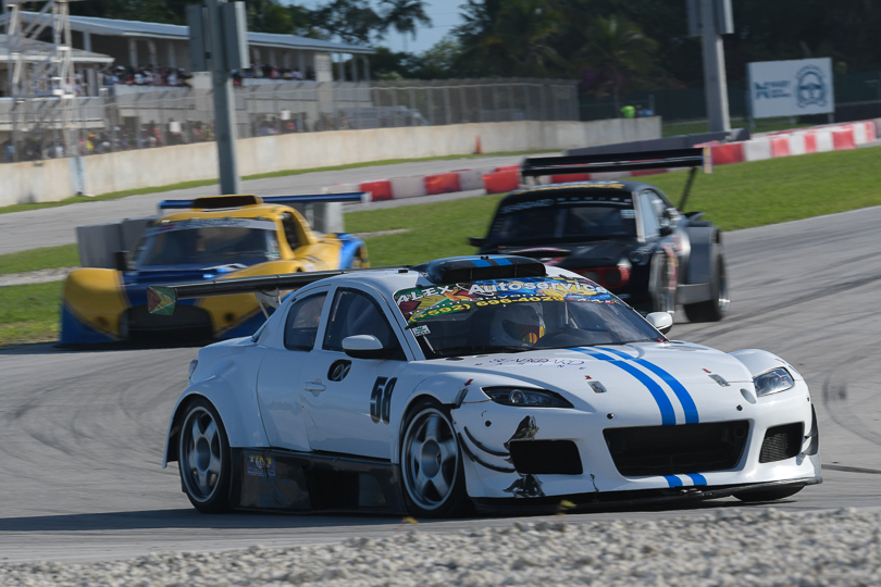 Groups 2 and 3 both hosted strong T&T entries, although Luke Bhola, leading Gp2 and second in Gp3, opted to concentrate on the Radical Caribbean SR3 Cup. A hat-trick of wins earned T&T’s Ronald Wortman (Shell Helix Ultra Honda Civic) the weekend’s Gp3 Champion Driver title, moving him from third to first in the points. Team Barbados was well-represented, Tremaine Forde-Catwell (Hilti/Rezult Auto/Mark’s Auto Spares/CCT Paint/Cheese Autoglass Finish Daihatsu Charmant) second in each race, with Shawn Eversley (SE Performance/Structural Systems Suzuki Swift) and Tyrone Martindale (Precision Electricals/JB Pickling & Painting Services/Martindale Workshop Honda CRX) sharing the final step on the podium.
