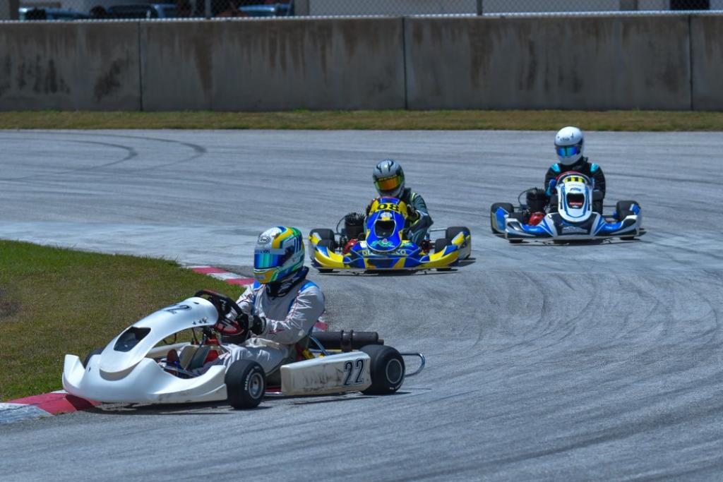Jaydn Brathwaite, who finished fourth in Easykart 60cc Cadets last year, enjoyed a very successful first outing for 2024. He qualified fastest, beating Jordyn Hinkson by just seven-hundredths of a second, then won all four races, three of them by than half a second or less from Hinkson. After finishing third in each race, Shamir Eversley still leads the class with 306 points and sits sixth in the overall standings.