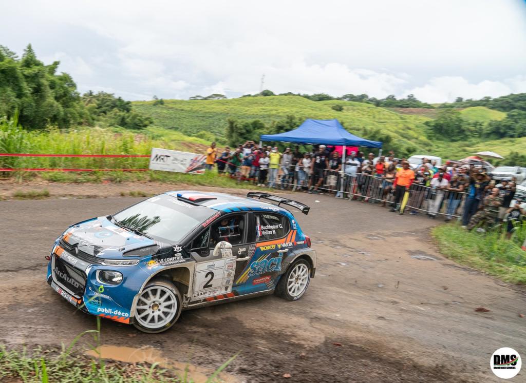 With conditions still tricky on Saturday and tyre choice crucial, Panton set the pace in his Ford Fiesta Rally2, winning the first three 10km stages, building a cushion of 9secs to Buchholzer and former WRC Ford and Toyota works co-driver Benjamin Veilla (Citroen C3 Rally2), with Britain’s Rob Swann and Patrick Walsh third, another 5secs back in their Skoda Fabia Rally2 evo. Twice a class-winner in Martinique in 2wd Citroen and Renault, Buchholzer’s switch to the C3 this year had already netted him a win in Guadeloupe and he cut a couple of seconds off Panton’s lead with his first stage win on SS4.